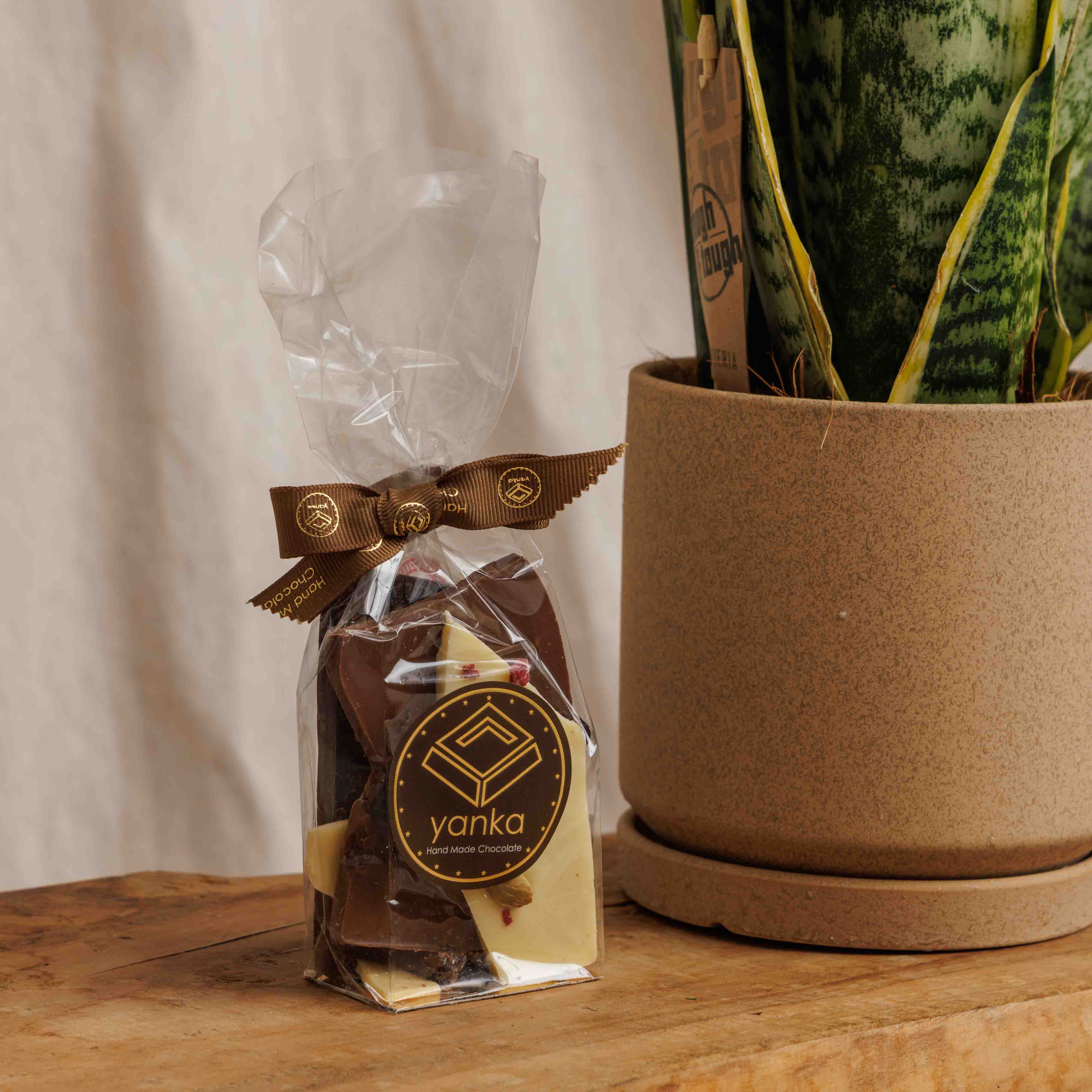 מארז מושלם של עציץ סנסיווריה ושברי שוקולד – הכי אלגנטי, הכי קל לטיפול, הכי טעים 🙂