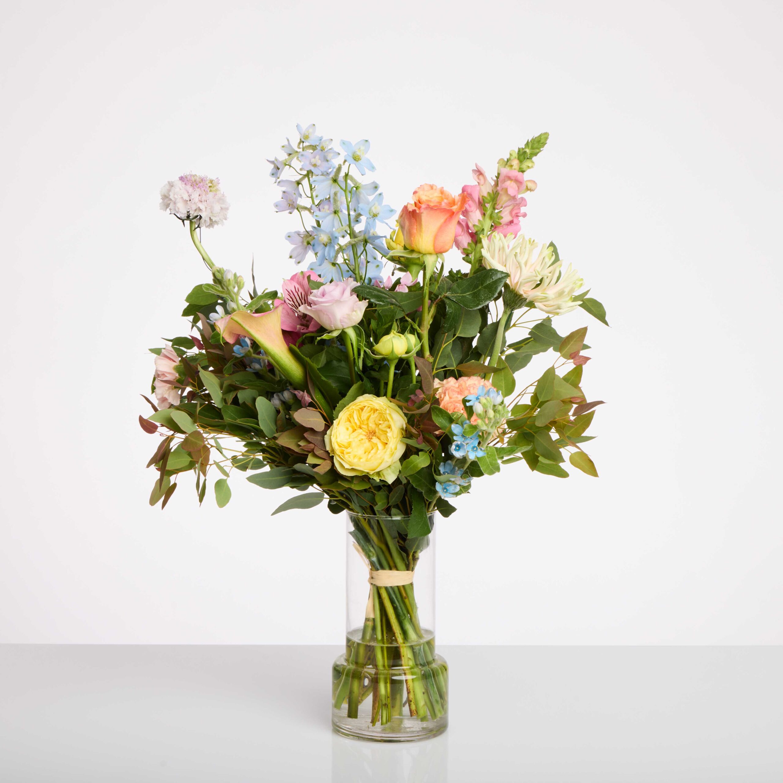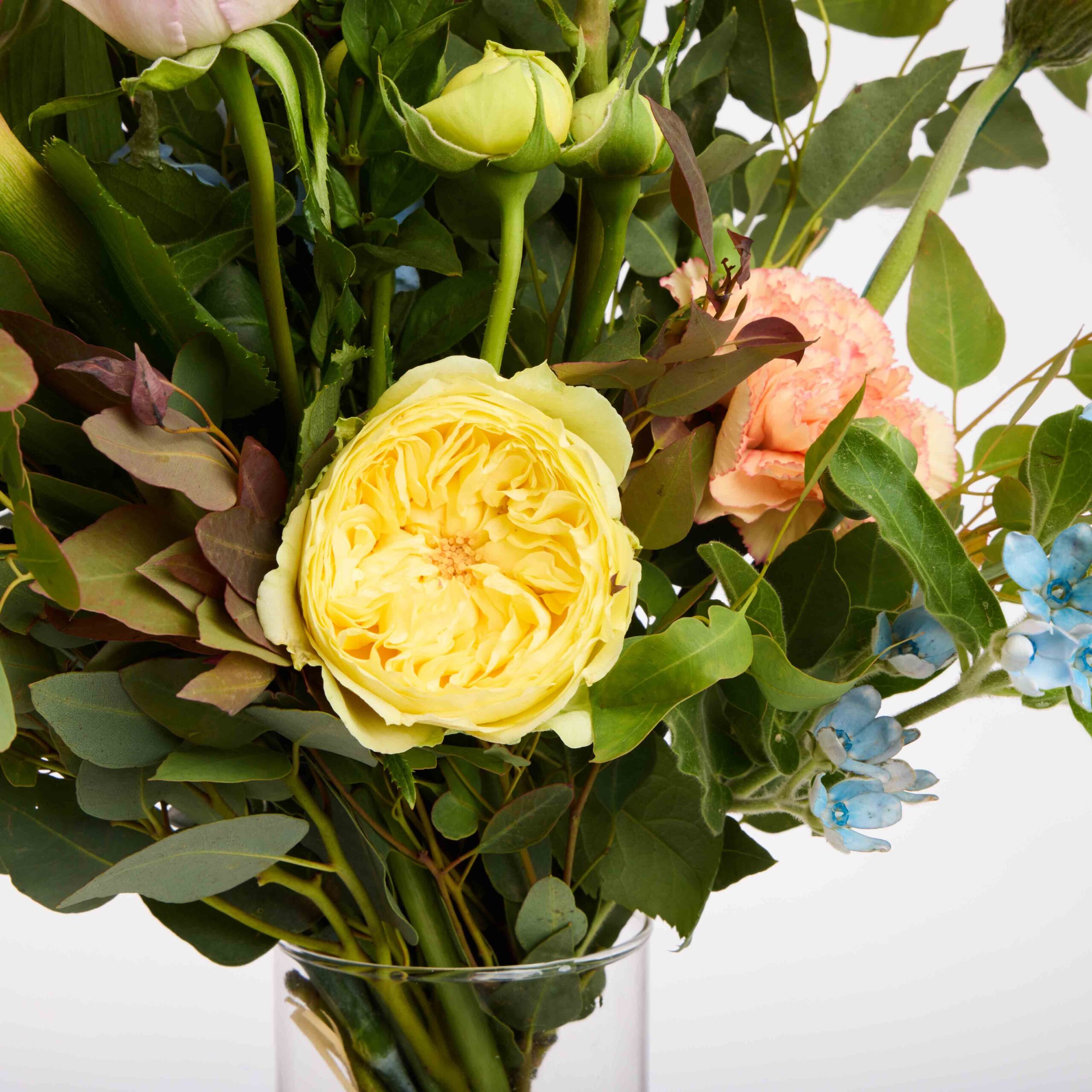 עלים הנמצאים מתחת לקו המים יכולים לגרום לריקבון והתפתחות חיידקים- אנחנו ממליצים להוציא אותם ולשטוף בעדינות את הגבעולים במים פושרים להסרת שאריות לכלוך.